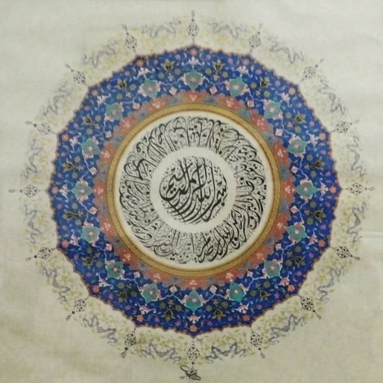 Elegant circular composition of Verses of Surah Isra in Thuluth.